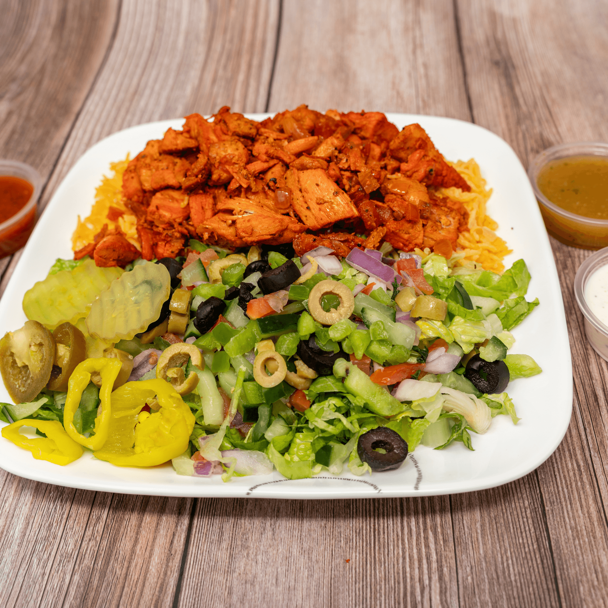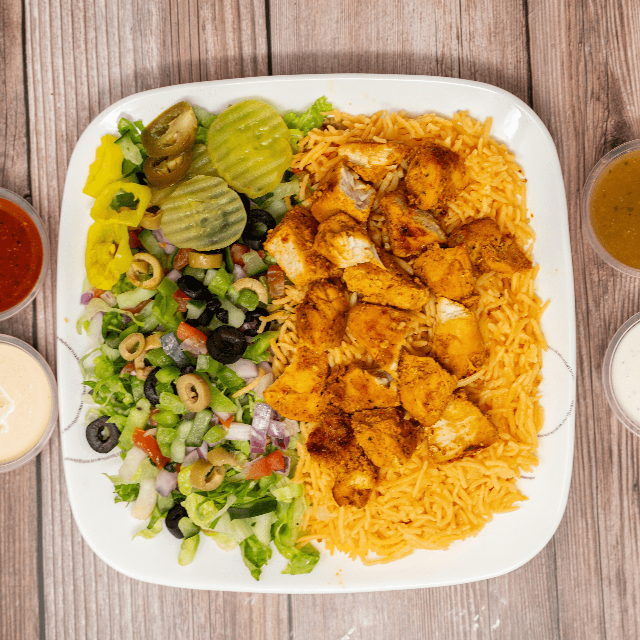 Choose from an array of gourmet platters featuring tender chicken, savory gyro, succulent fish, crispy falafel, or flavorful kebabs, all crafted with fresh ingredients and unique flavors to create a delightful culinary experience